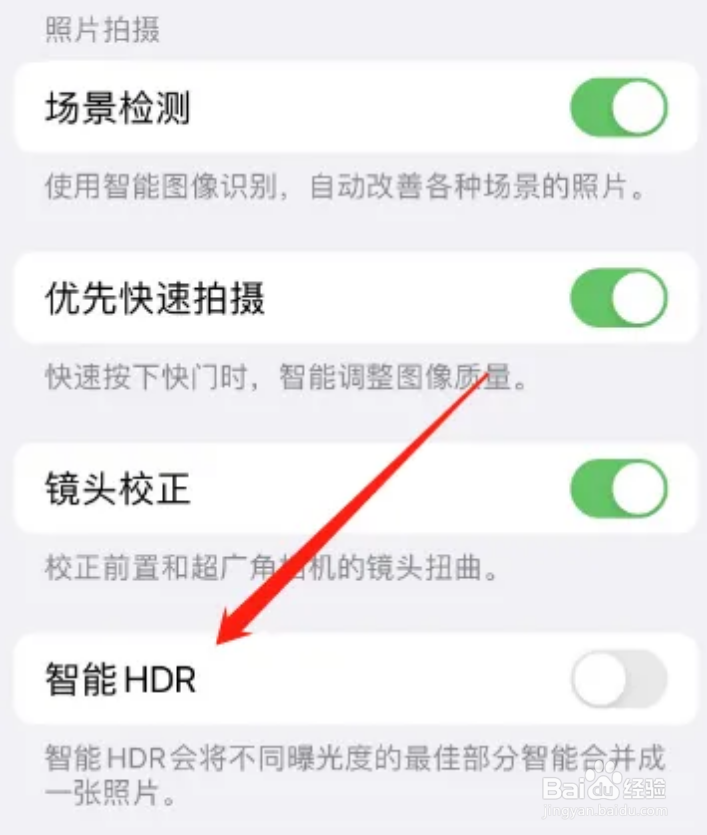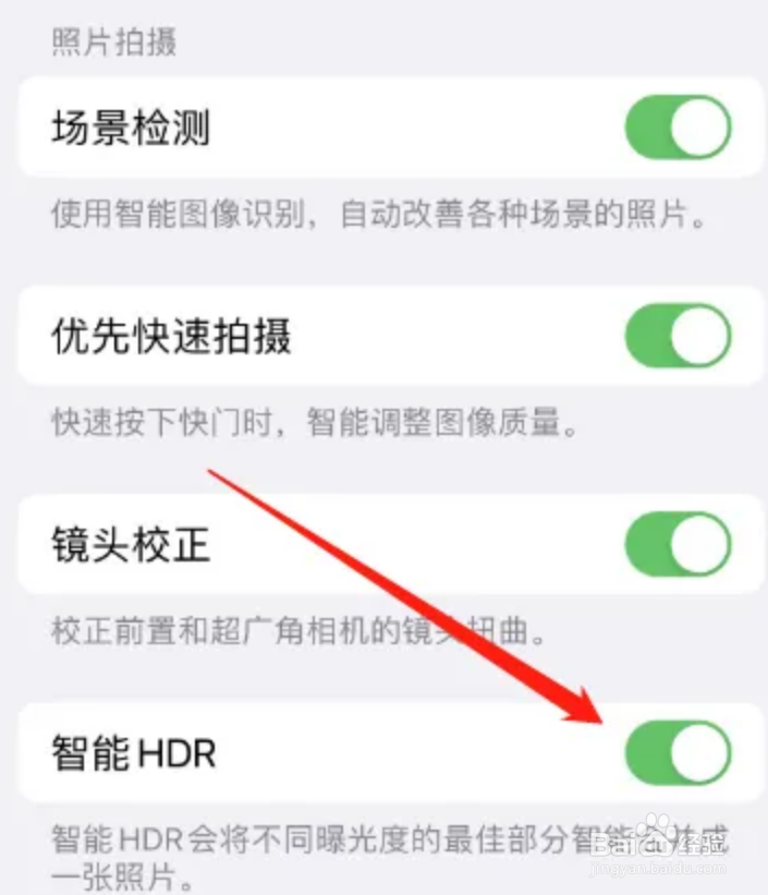 第三步,我们点击开启智能HDR,即可开始拍照。