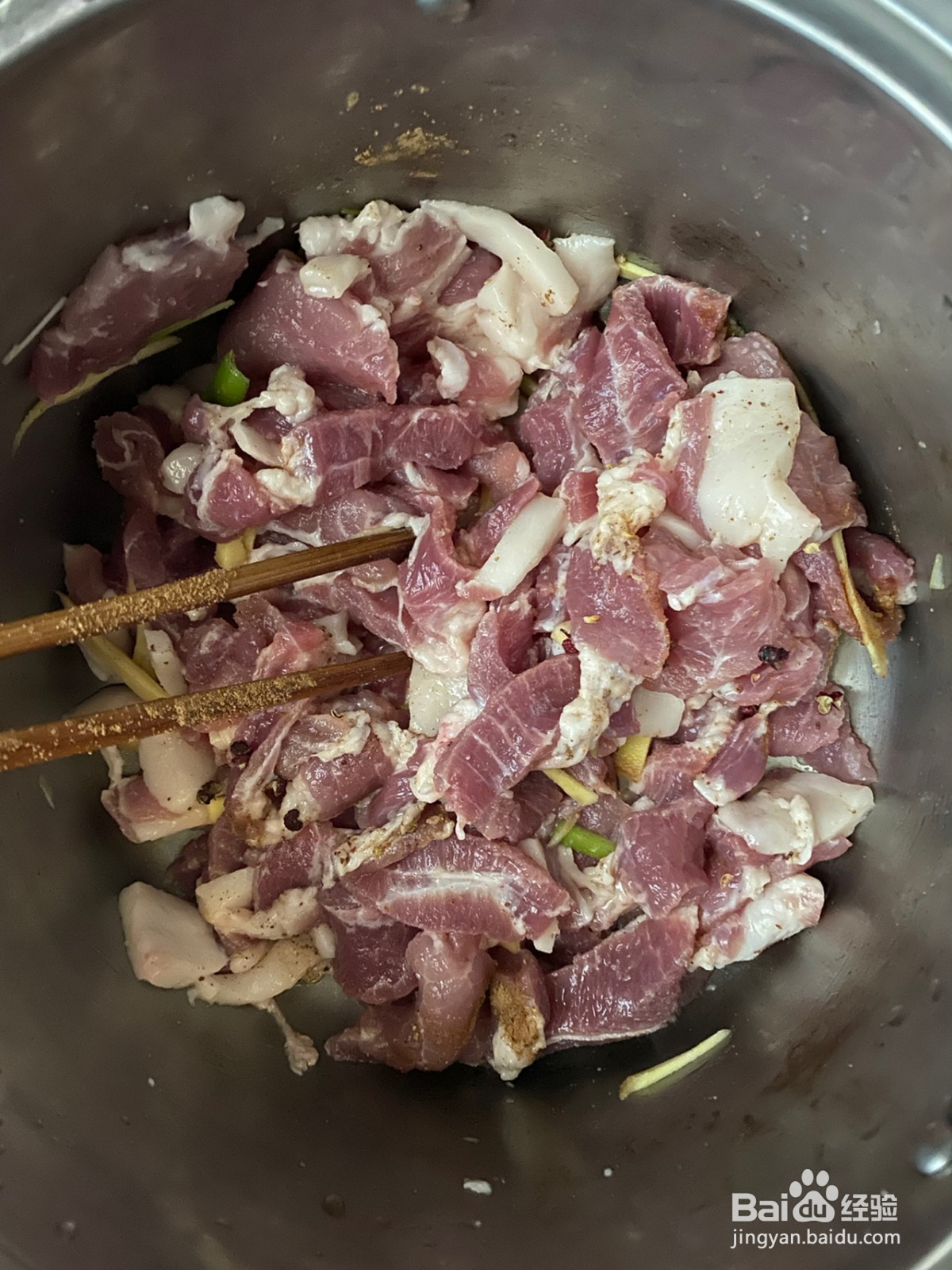 把姜葱料酒花椒盐都放进来,腌半小时入味