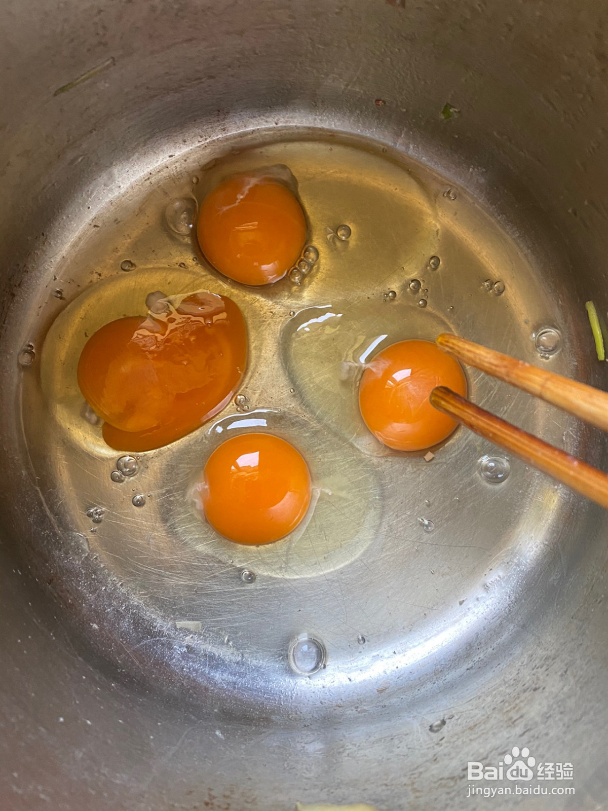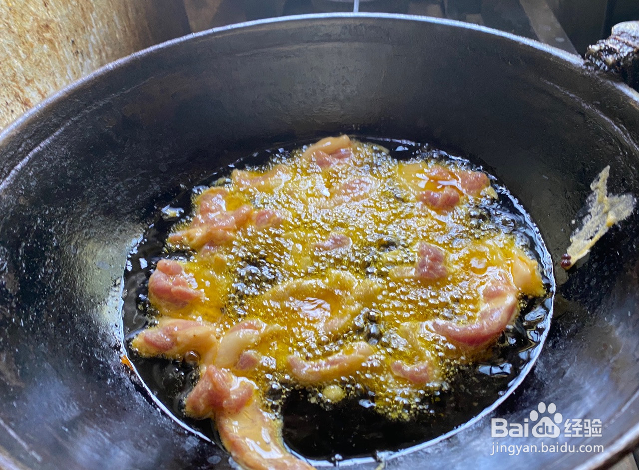 油温五成热下锅,我这个放的有一点点早,等筷子放进去有点泡就可以了