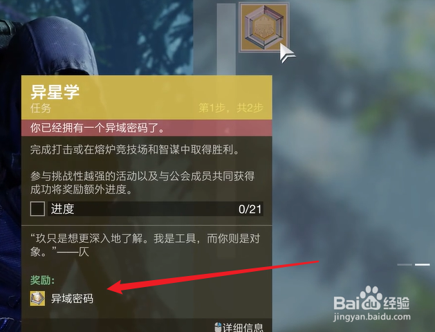 最后完成异星学任务就可以获得异域密码了,如下图所示