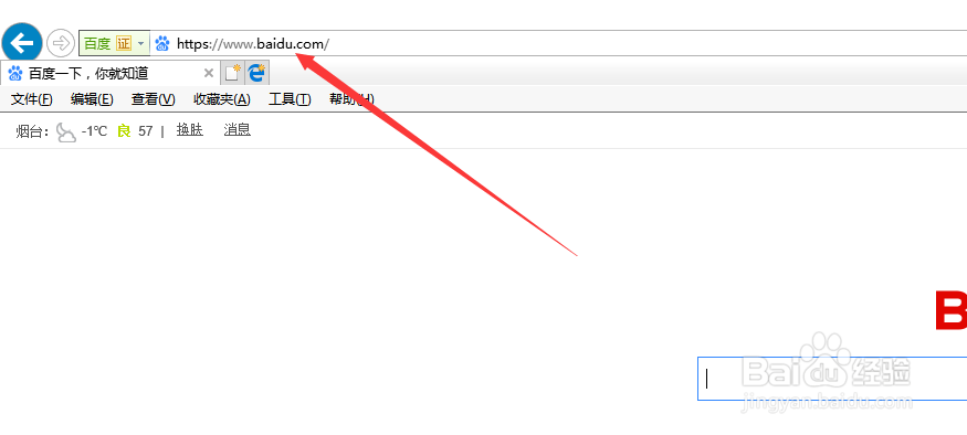 在打开的页面的地址栏中输入:www.baidu.com 按回车键。