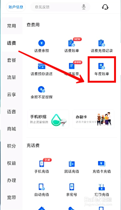 点击【年度账单】。