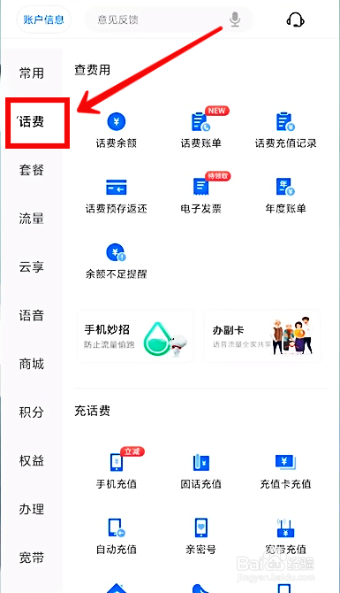 选择【话费】。