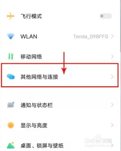 1、打开手机设置界面点击其他网络与连接