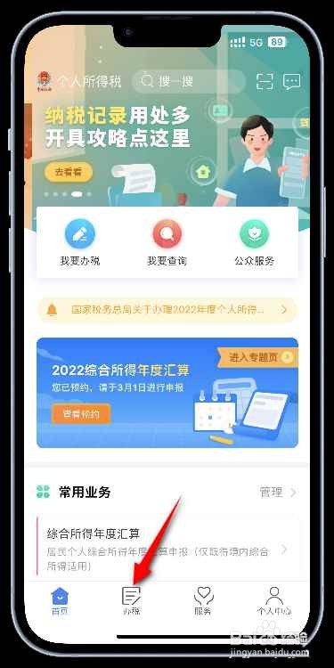打开手机桌面上的个人所得税,然后点击办税选项