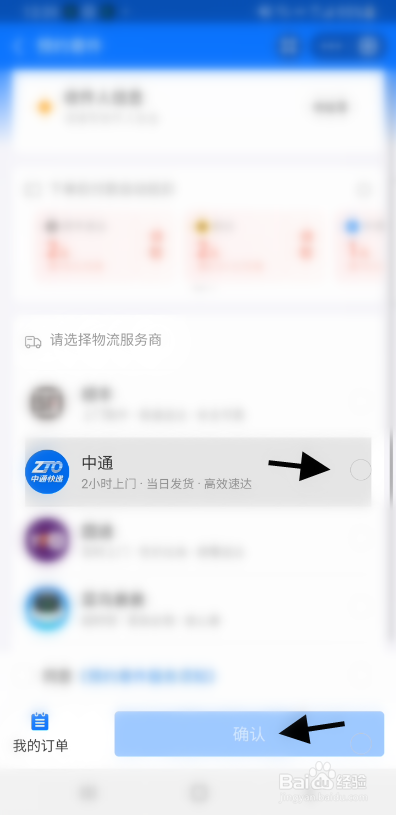 最后一步,输入信息,选择中通,点击确定选项即可。
