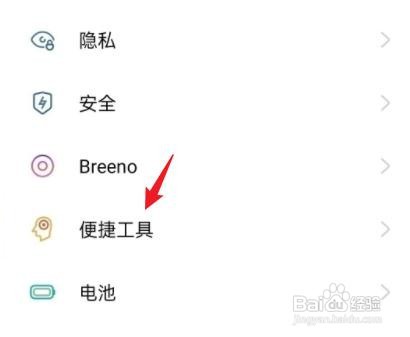 点击便捷工具:进入设置界面,点击便捷工具选项。