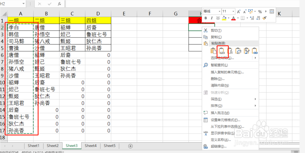 6、在H2单元格内右侧,选择粘贴值按钮,点击即可。如下图