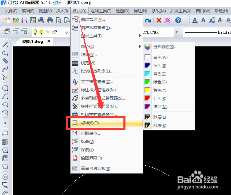 一方面,通过以上操作,完成了圆弧的等分操作,但是等分点却是无法直观显示的,对此我们还需要对等分点的样式进行设置。按图示进行操作。