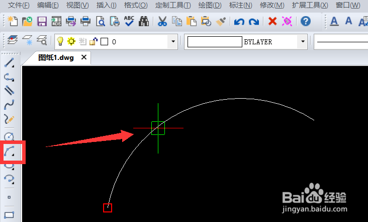 为了实现以上功能,我们通过百度搜索下载任意一款CAD编辑工具程序并安装运行,从打开的程序主界面中,利用“三点弧”绘制一个圆弧。