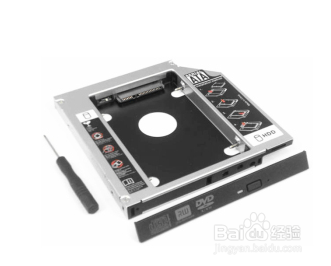 其次我们还需要去买一个“笔记本光驱位托架”,这个干嘛用呢?没错,我们把原机械硬盘通过改装就是放在光驱位那里,这样就不用每天带着个移动硬盘到处跑了。拆光驱位如图把那两个螺丝拧下来然后往外扯一下光驱就出来了。