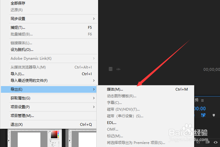 之后,在菜单栏“文件”命令菜单中选择“导出”命令