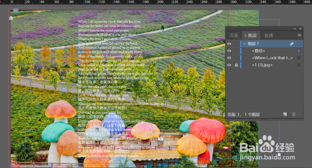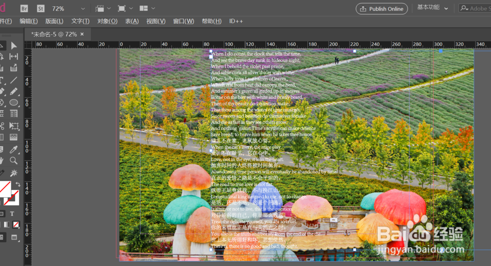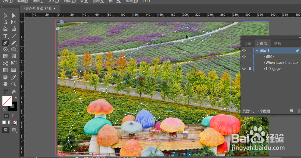 打开InDesign后,新建一份文档,之后ctrl+d键置入一张图片到文档里作为背景图层;