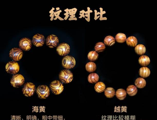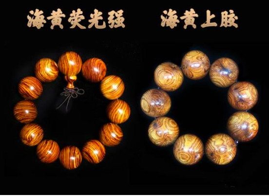 海黄制成品经打磨后,质感强,荧光感足,在光线好的环境下多呈现玉石般效果。而其他冒充海黄的木材在荧光表现上多不及海黄,这也是海黄区别于其他木材的一个重要特征的。