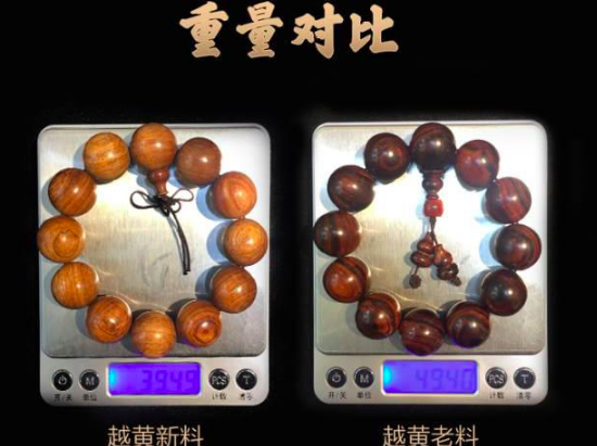 密度多通过克重来直观反映,通常不作为辨别真伪的依据,很多仿冒海黄的木材在做成珠子后因尺寸的略微差异而现实差不多的克重,这里这提供一组图片供参考,不作为依据。