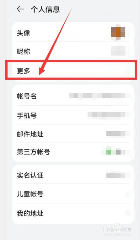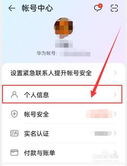 在“帐号中心”界面中,点击“个人信息”进入,如图所示。
