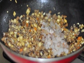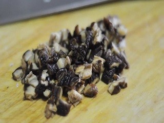 木耳和香菇放入清水中,泡软,捞出,切成小丁。