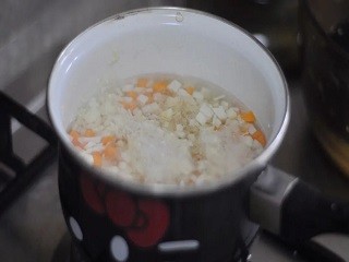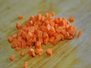 冬笋和胡萝卜去皮,清洗干净,切成小丁。