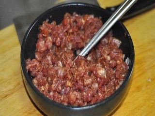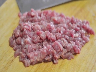 猪油清洗干净,剁成肉泥。