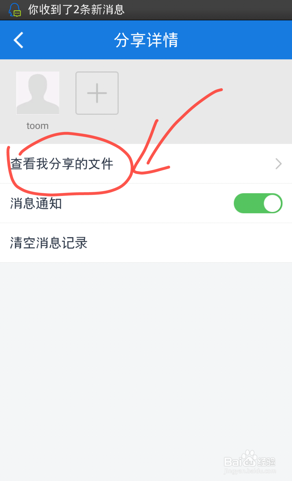 在可以点击:“查看已分享的文件”,可以看看刚刚分享的文件。