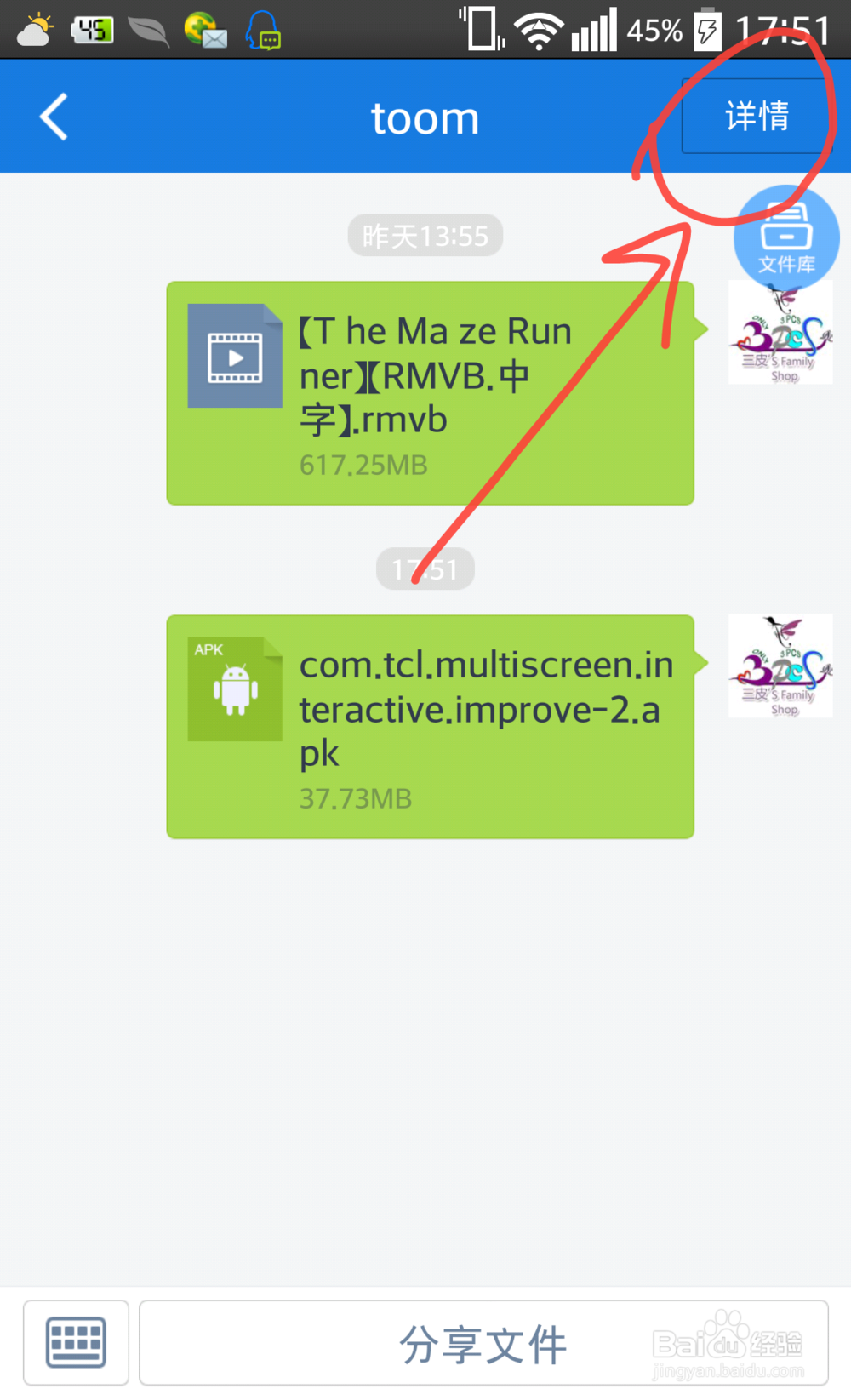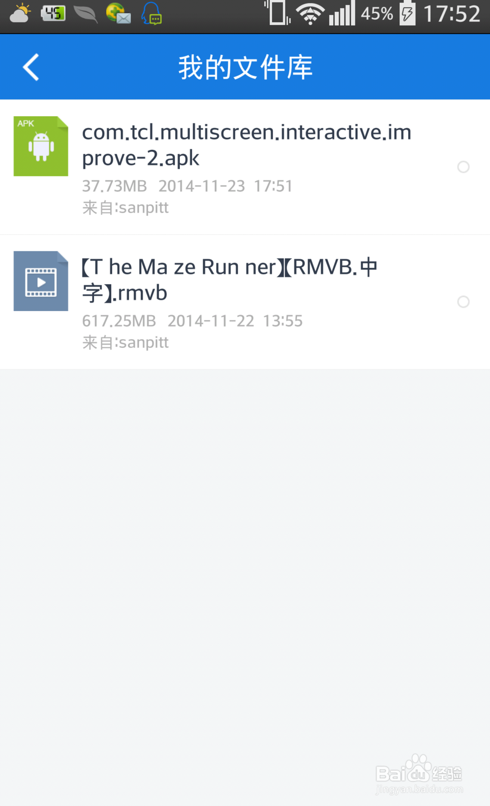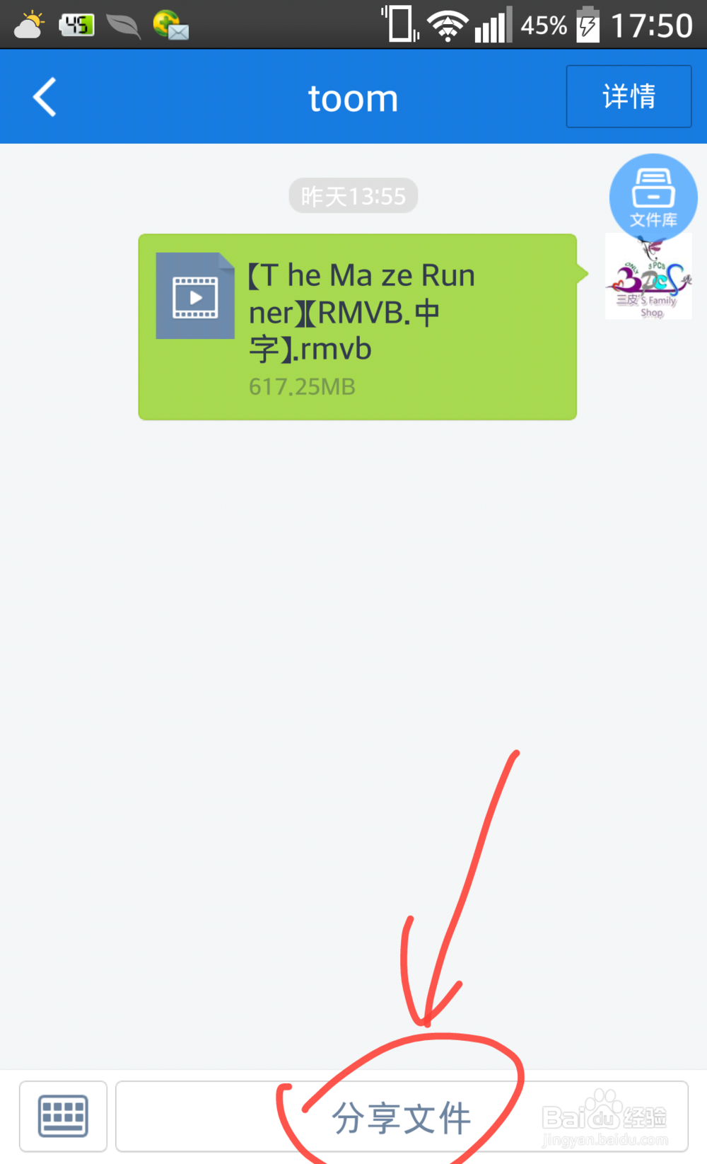 选择好友之后,进行文件选择分享,在这里我分享一个手机APP软件给我的好友。如图点击选中文件。