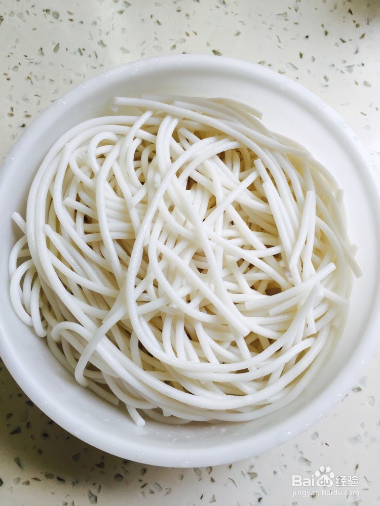 这就是大米面,劲道版的乌冬。大米面先焯水,冲冷水沥干。