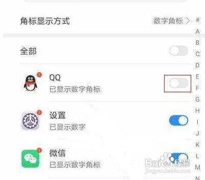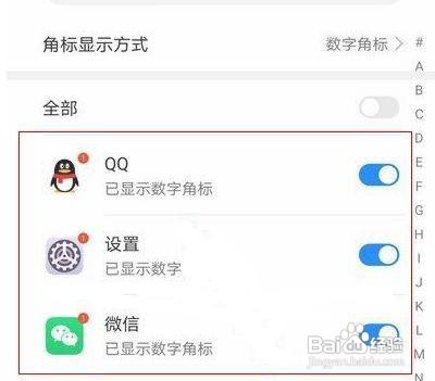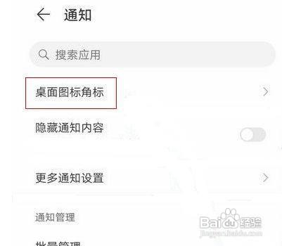 进入桌面图标角标界面,找到要消除感叹号的选项。