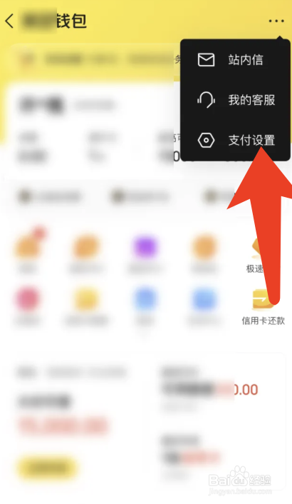 第一步,我们进入到钱包菜单栏后,选择上方的三点按钮并点击支付设置按钮;