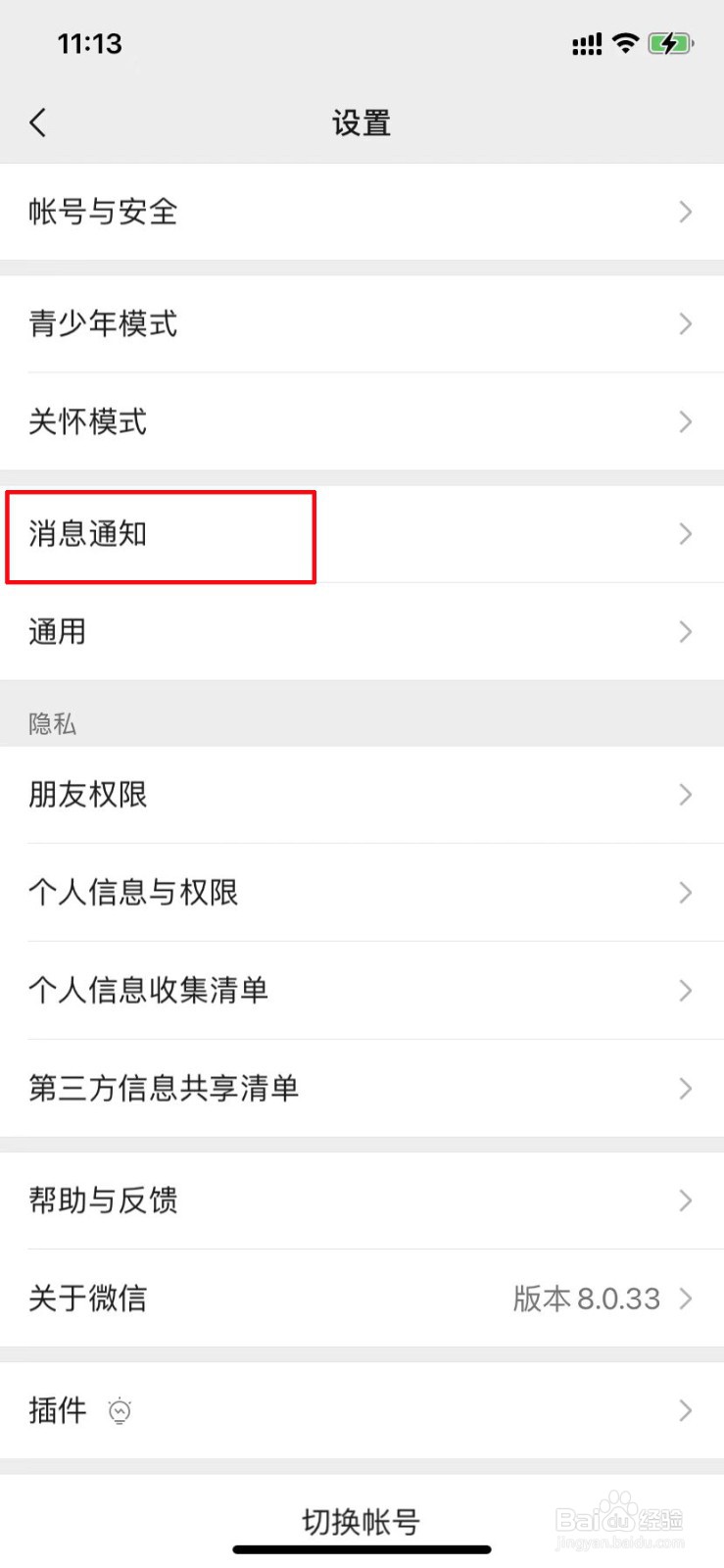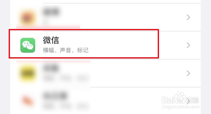 在通知功能里面,下滑找到【微信】应用,并点击进入;