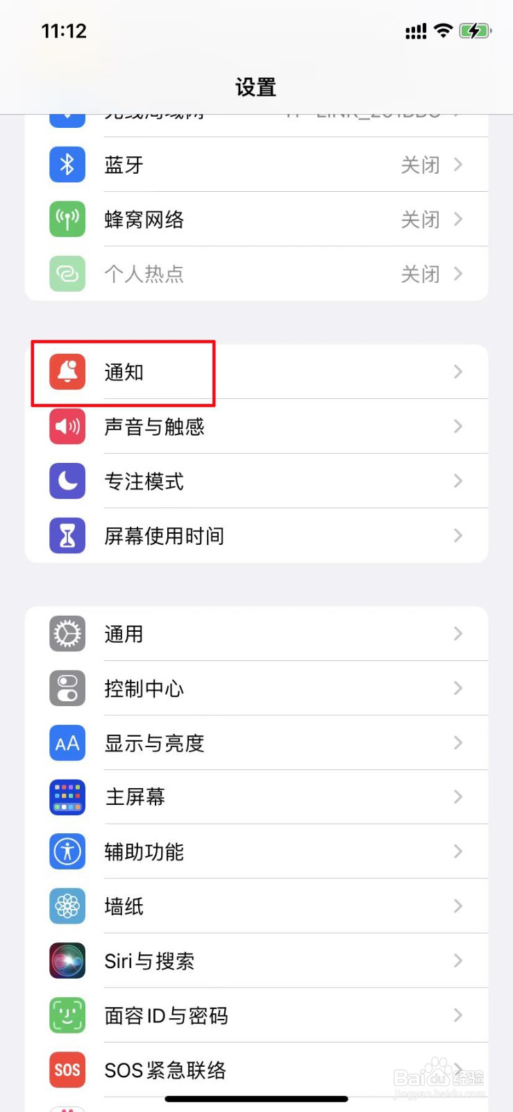 首先打开手机,找到并点击设置应用,找到【通知】功能,并点击进入;
