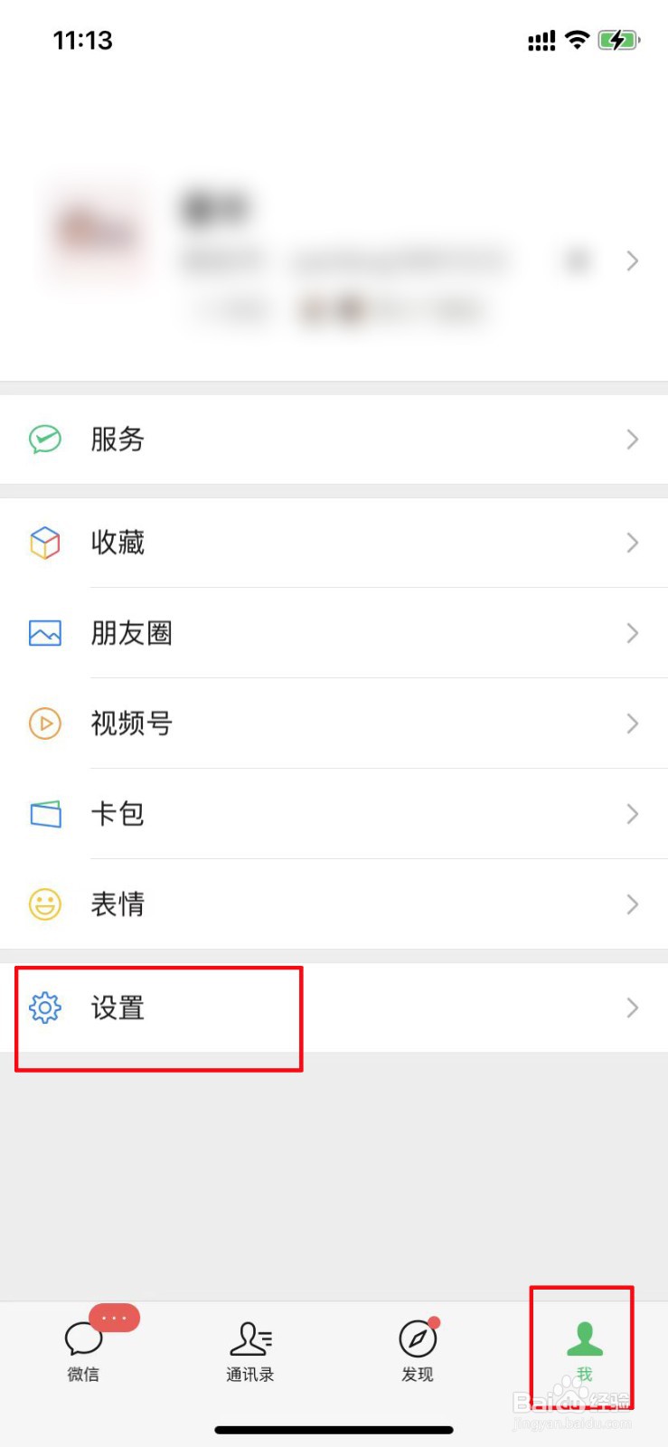 另外一种方法是在微信里面,选择【我】,再点击【设置】进入;