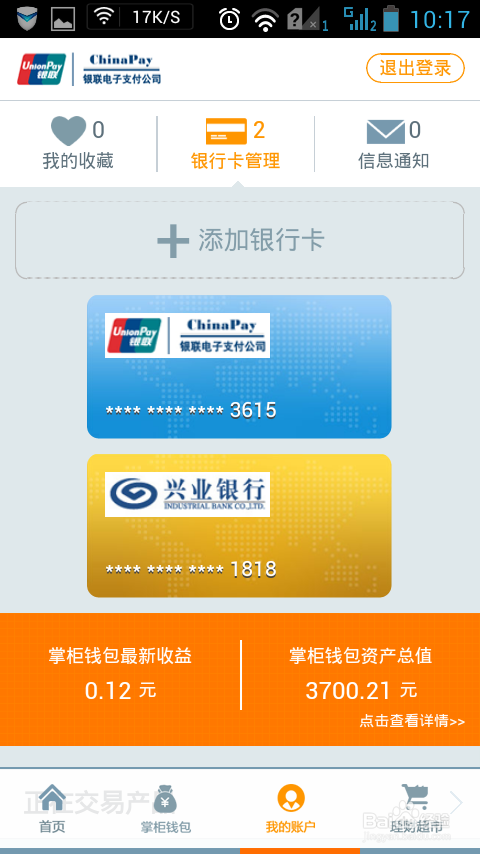 掌柜钱包是由兴业银行于3月份推出的一款余额理财工具,具备“7×24小时交易”、“T+0赎回到账”、“1分钱起购”、“当日申购无上限”、“具备目前业内最高当日赎回额度3000万元”和“赎回资金瞬间到账”等特点。小编同大家分享一下如何重新绑定银行卡的方法。