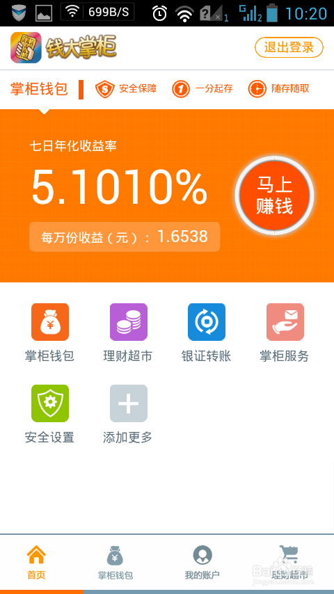 打开手机上的“钱大掌柜”软件,输入密码,然后登陆;