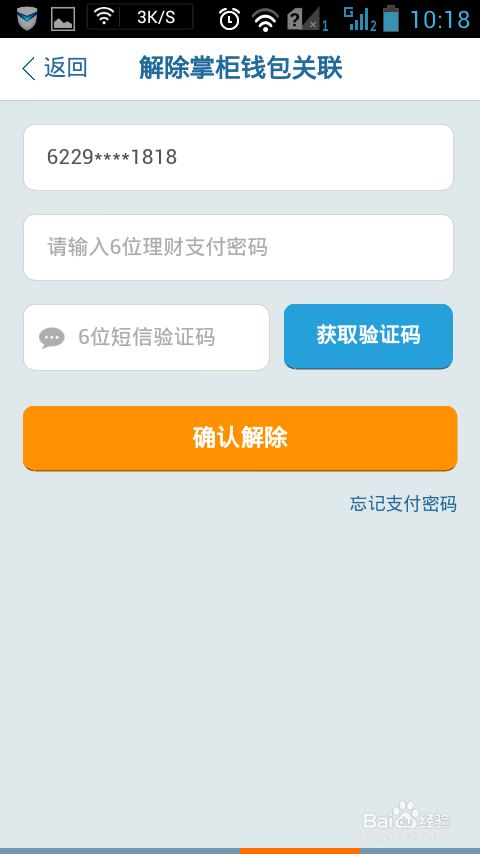进入下图页面,选择“解除”“已开通掌柜钱包”;