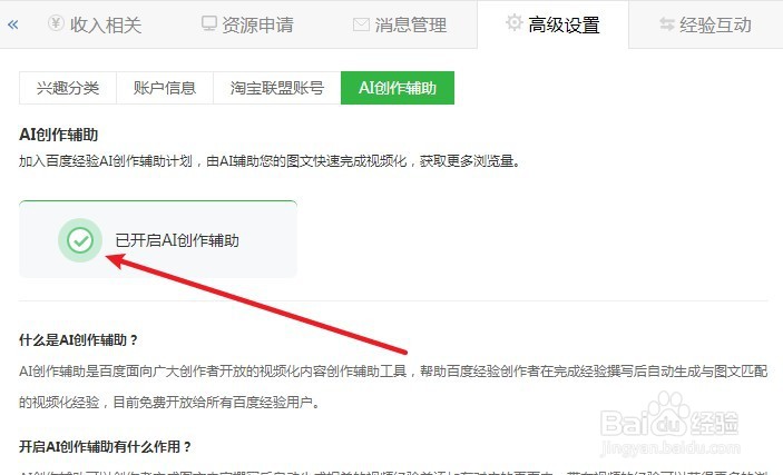 在使用百度经验撰写经验的时候,开通了AI创作辅助功能,那么想要关闭此功能,具体该怎么操作呢,一起来看看吧!希望能帮到你。