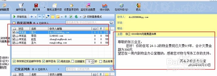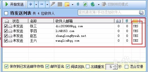 最后一步:点击“开始发送“,GoGoMail工具,就会将每个人的工资条发到各自邮箱中去.
