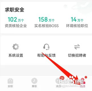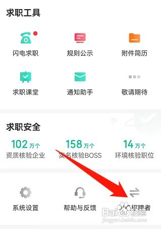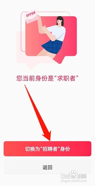 之后在页面里选择点击切换为“招聘者”身份就可以了