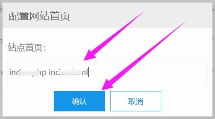在“配置网站首页”弹框中,修改“站点首页”的值,点击【确认】完成。