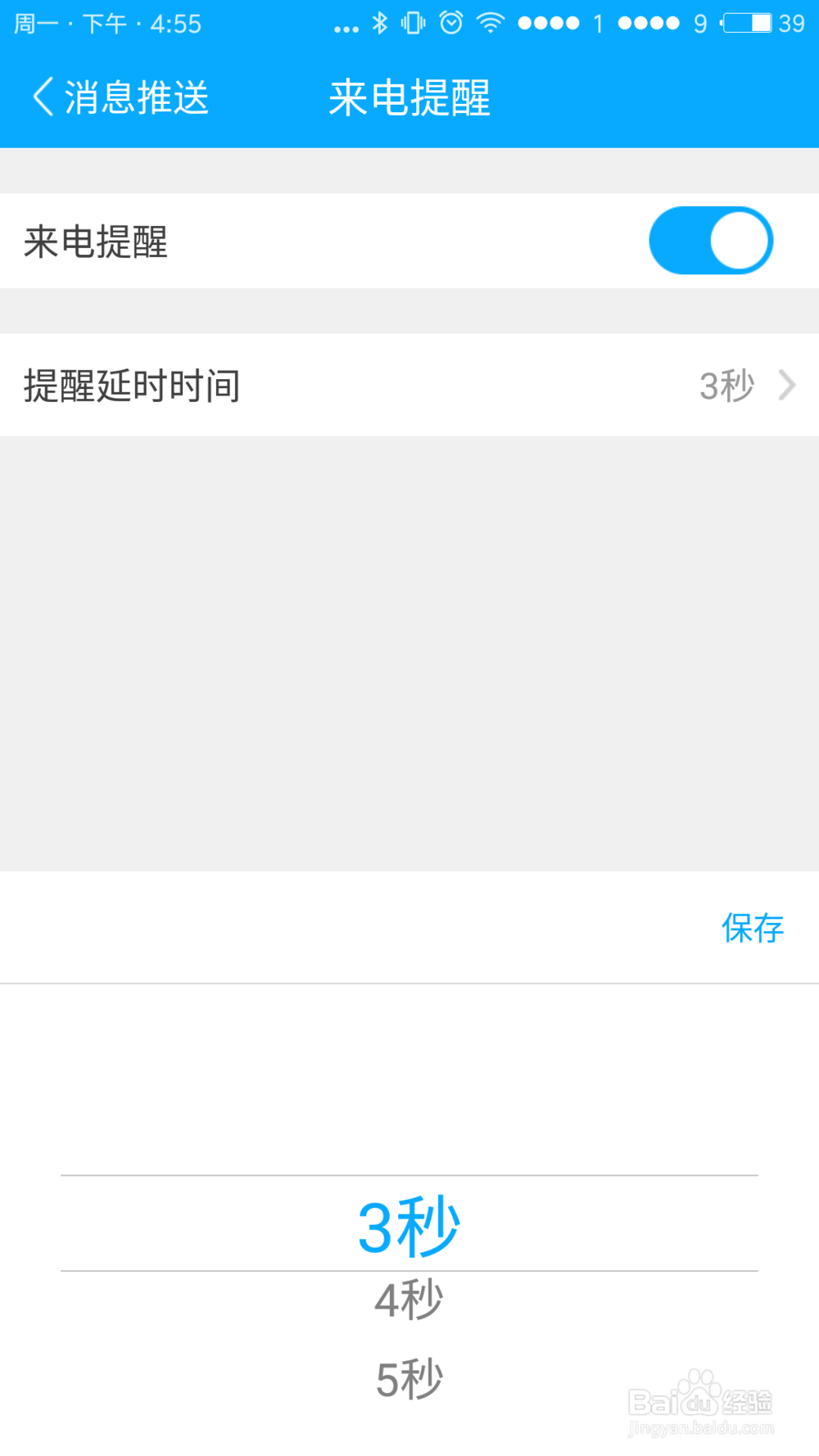 打开来电提醒设置选项,选择开启或关闭来电提醒按钮,开启来电提醒还可选择提醒的延长时间。