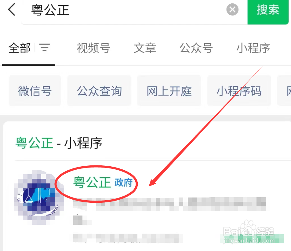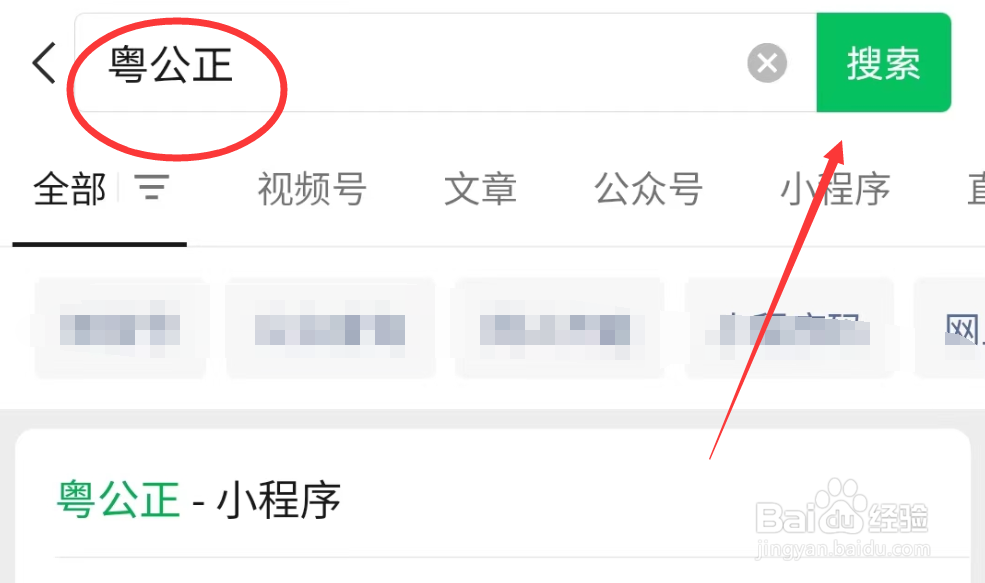 打开APP,输入【粤公正】,点击搜索