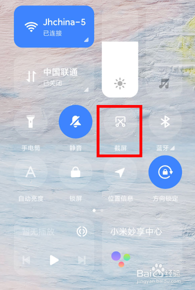 从手机顶部的右侧下拉出通知栏,点击截屏图标。