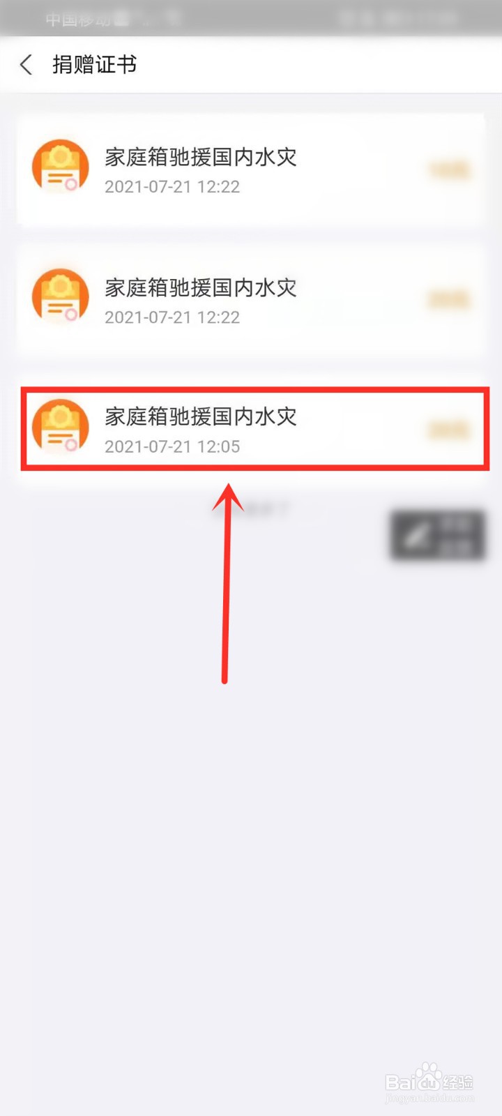 进入【捐赠证书】界面,打开要查看的捐款证书。