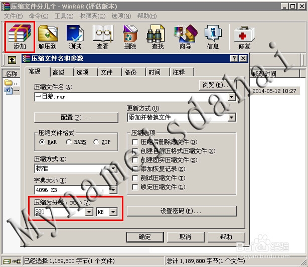 选择“添加”。然后在下面的红框位置输入需要的文件大小。注意文件的单位,软件会自动根据你所选择的大小拆分文件。