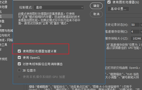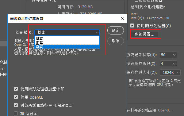 5、然后在图像处理器下方的高级设置点开选择高级绘制模式。