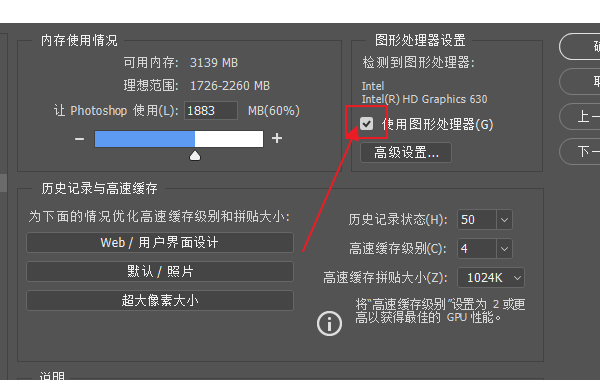 6、确认下方的使用图形处理器等对应选项已经进行勾选。