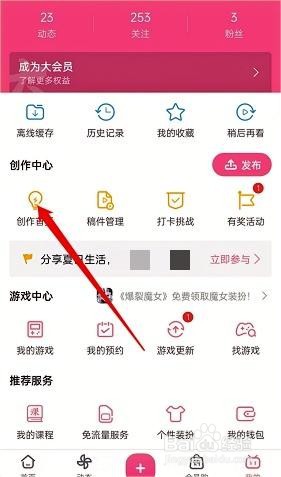 打开哔哩哔哩软件,选择如图的【创作中心】,进入【创作首页】。