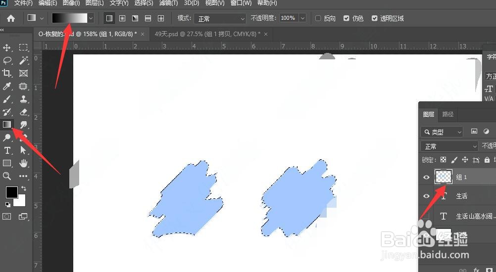 然后调出长投影选区,选择渐变工具在选区制作长投影效果