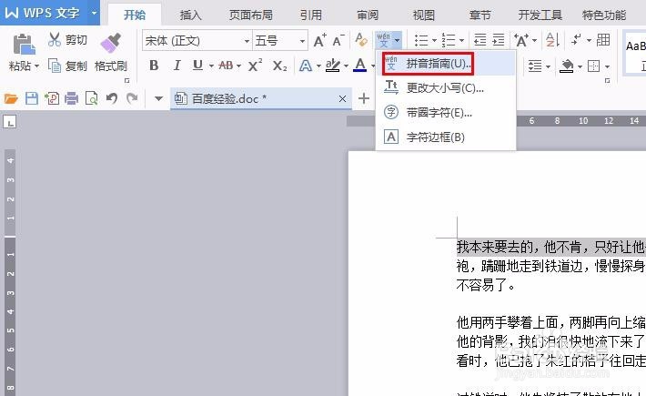 第一步:选中并复制需要加拼音的文字,粘贴到一个空白的wps文档中。