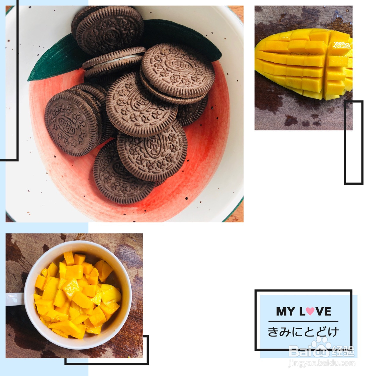 1.芒果切丁,准备好一包奥利奥饼干。