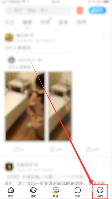 进入百度贴吧首页后,点击页面右下角的【我的】